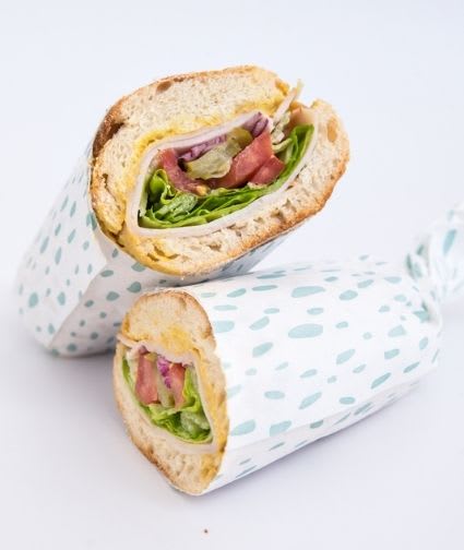 פסטרמה הודו, חרדל, מיונז, מלפפון חמוץ, חסה, עגבניה ובצל סגול