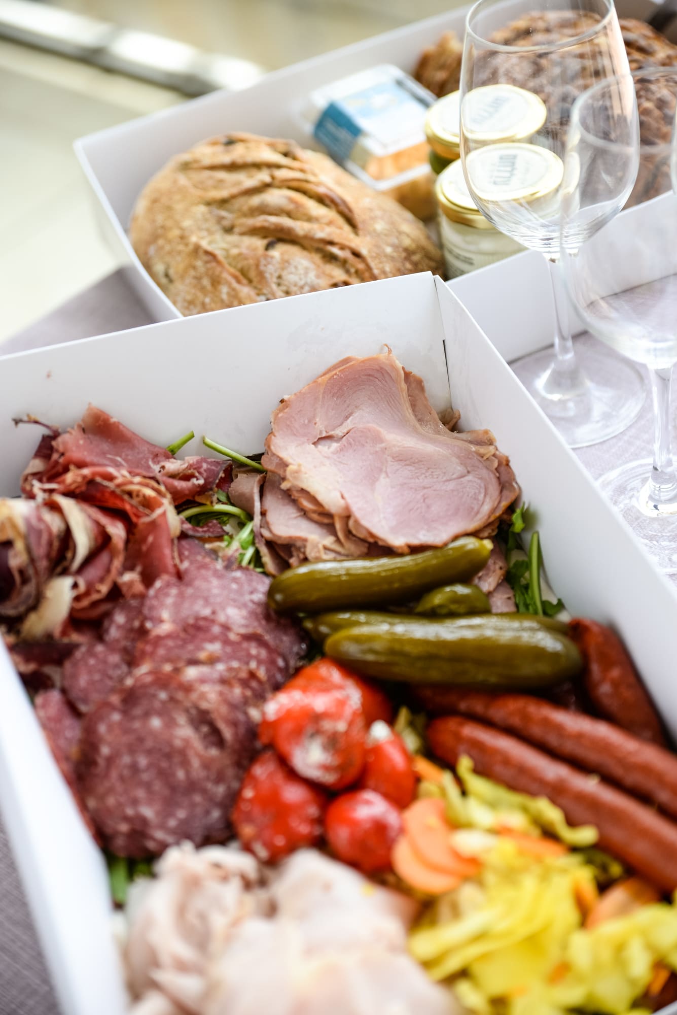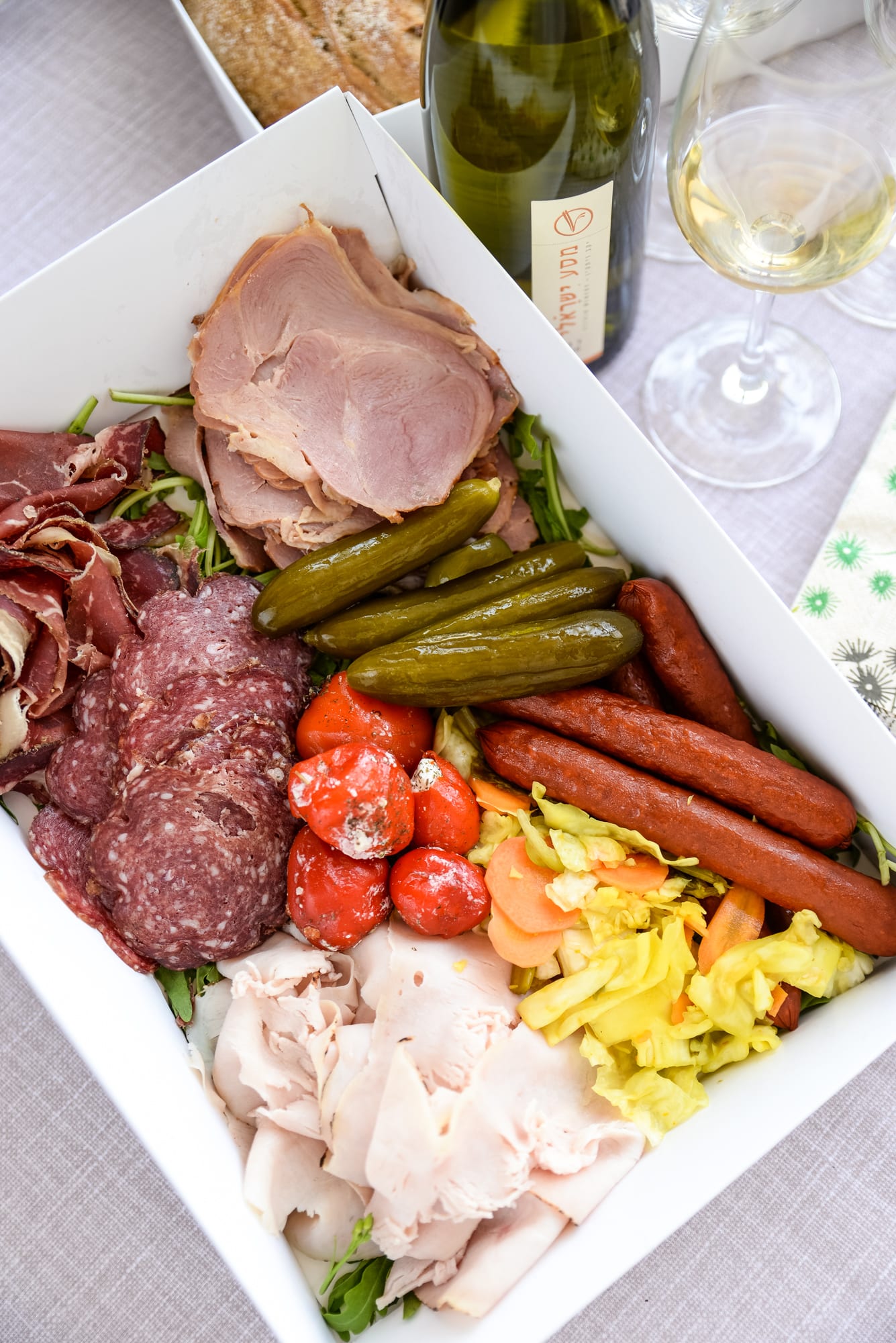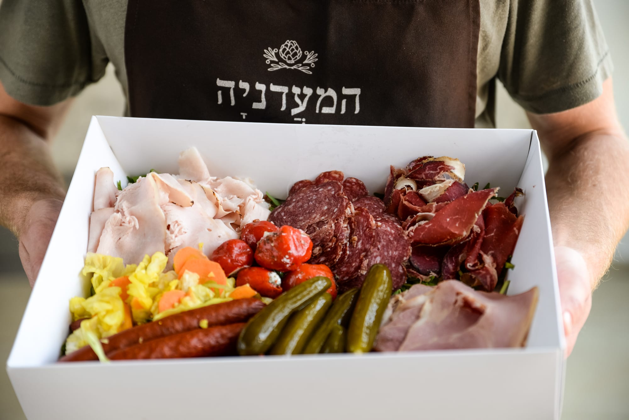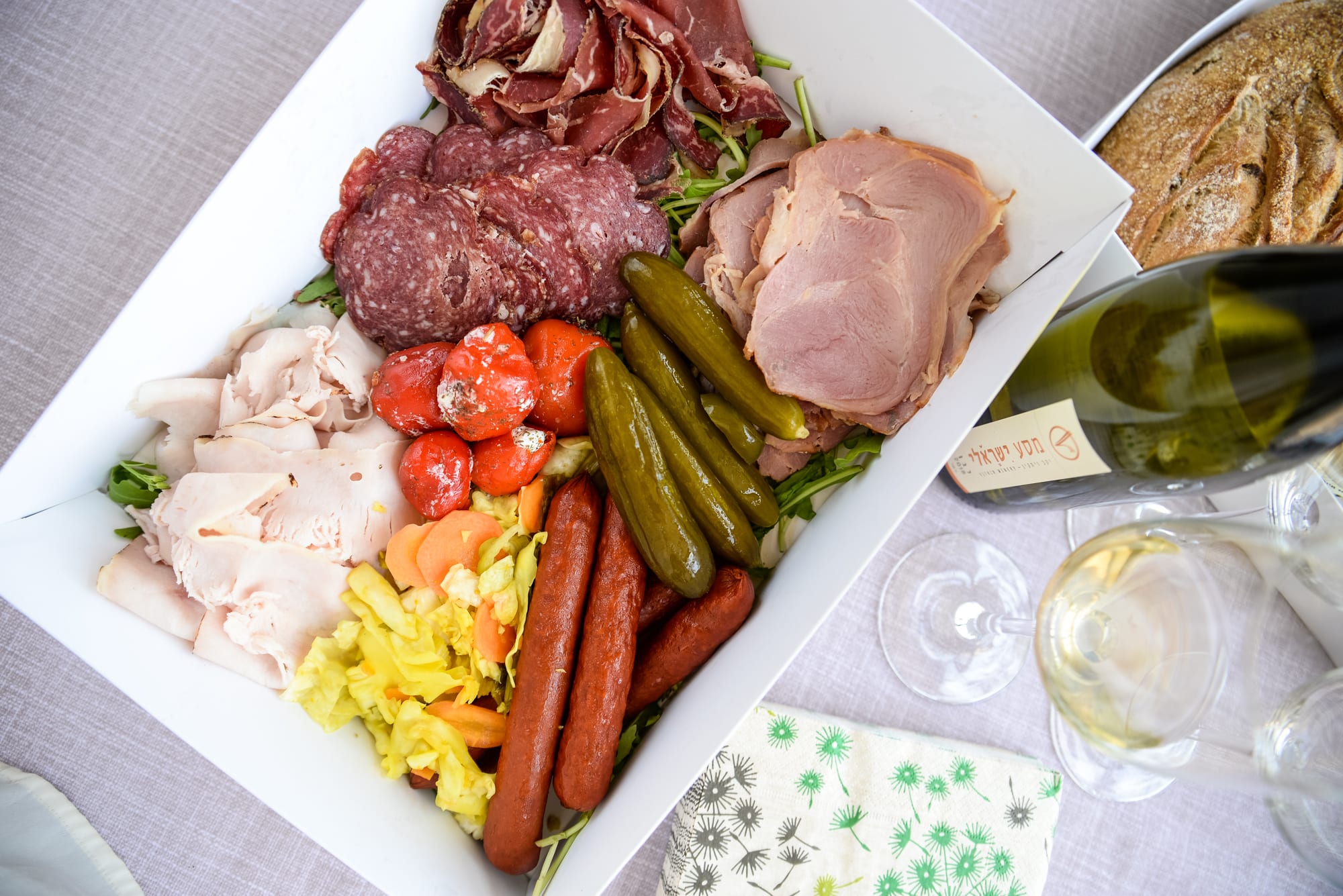 מכיל מגוון סוגי נקניקים ופסטרמות, מלפפונים חמוצים, רוקט, וחרדל